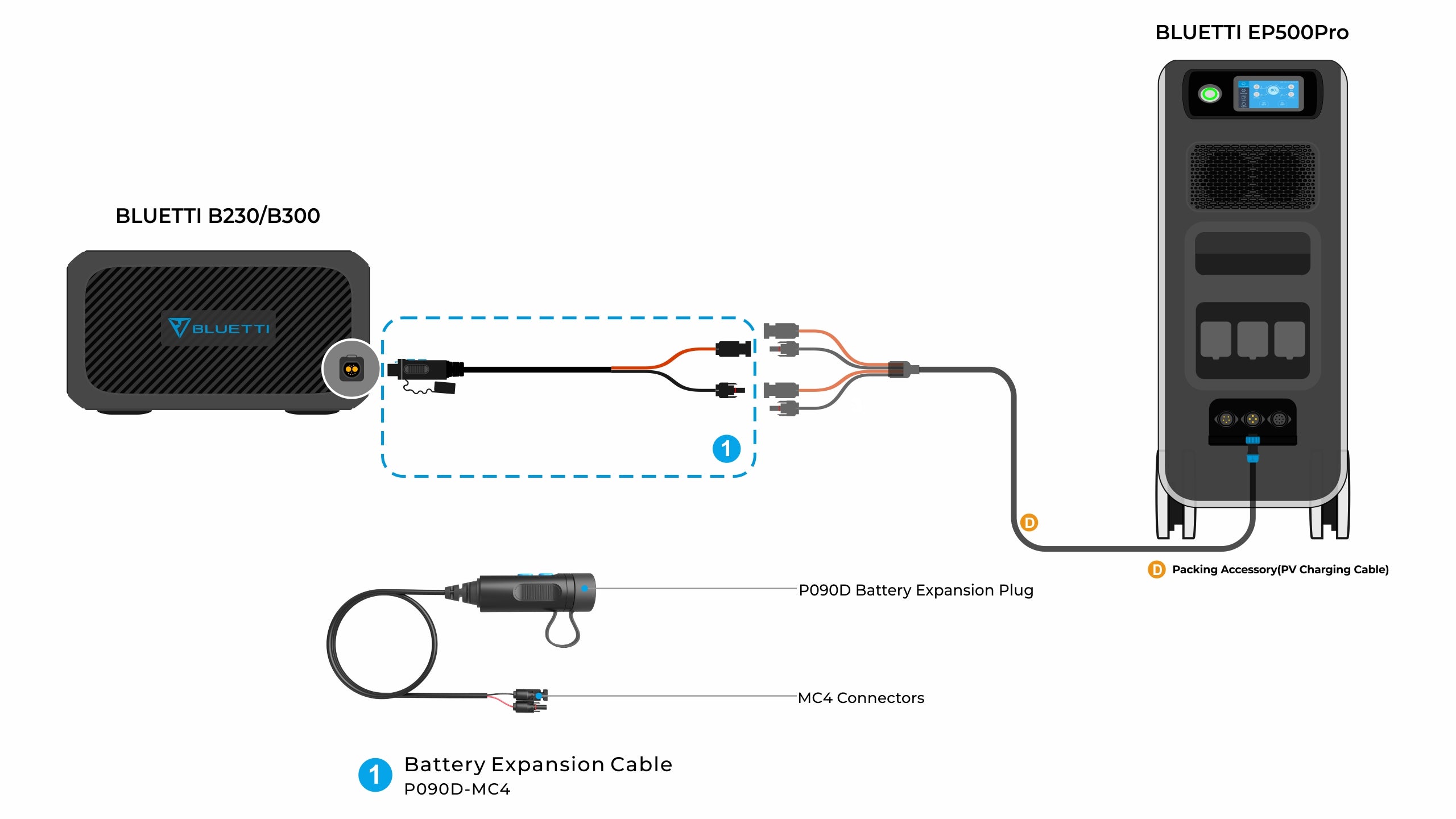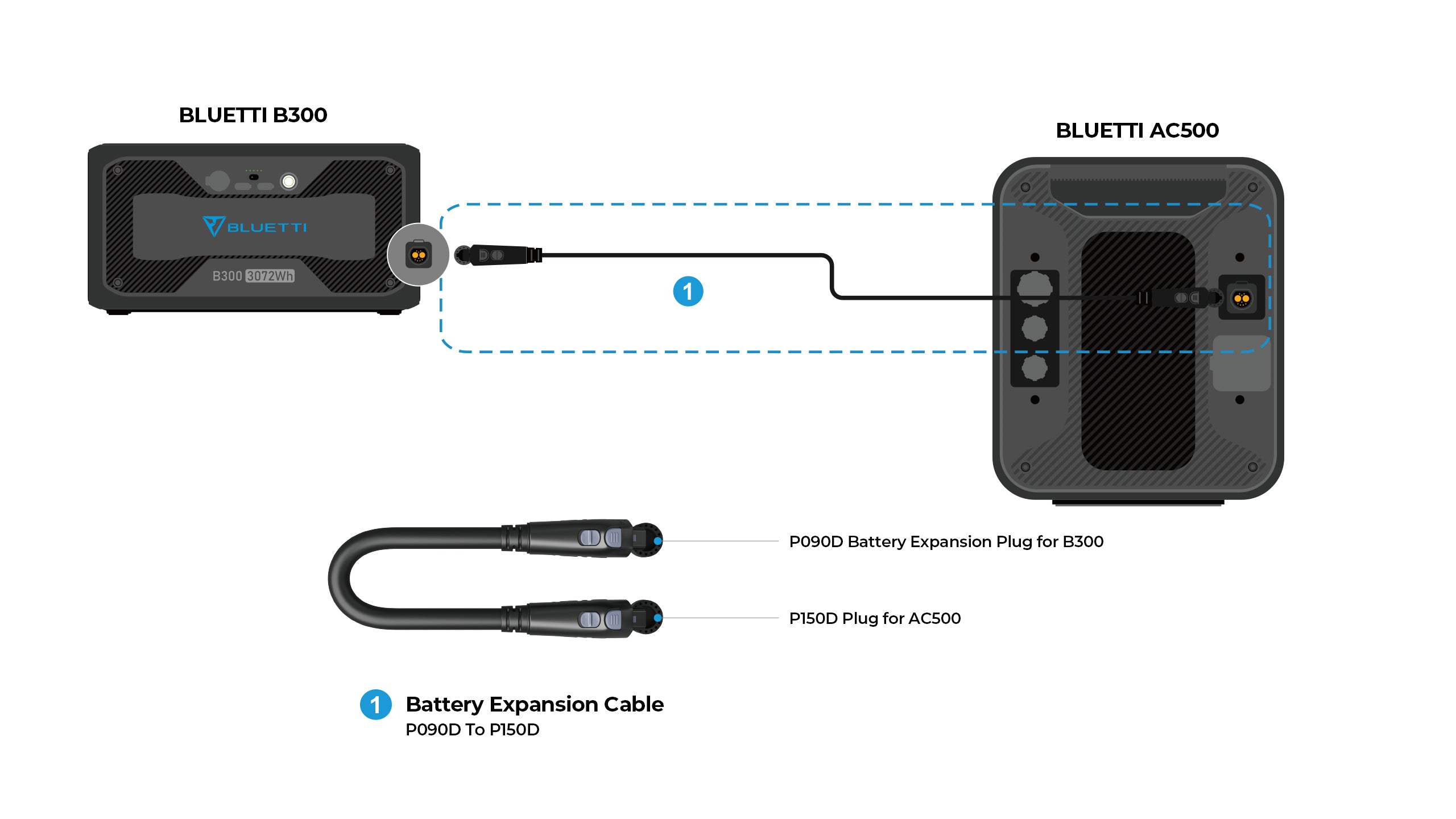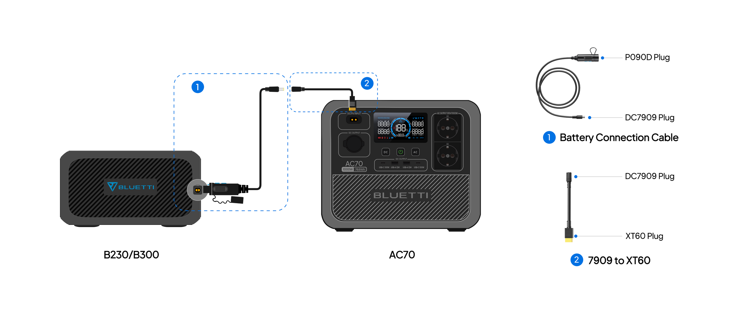 Application: By using this cable, you can connect the B230/B300 external battery packs to your current Bluetti power stations.