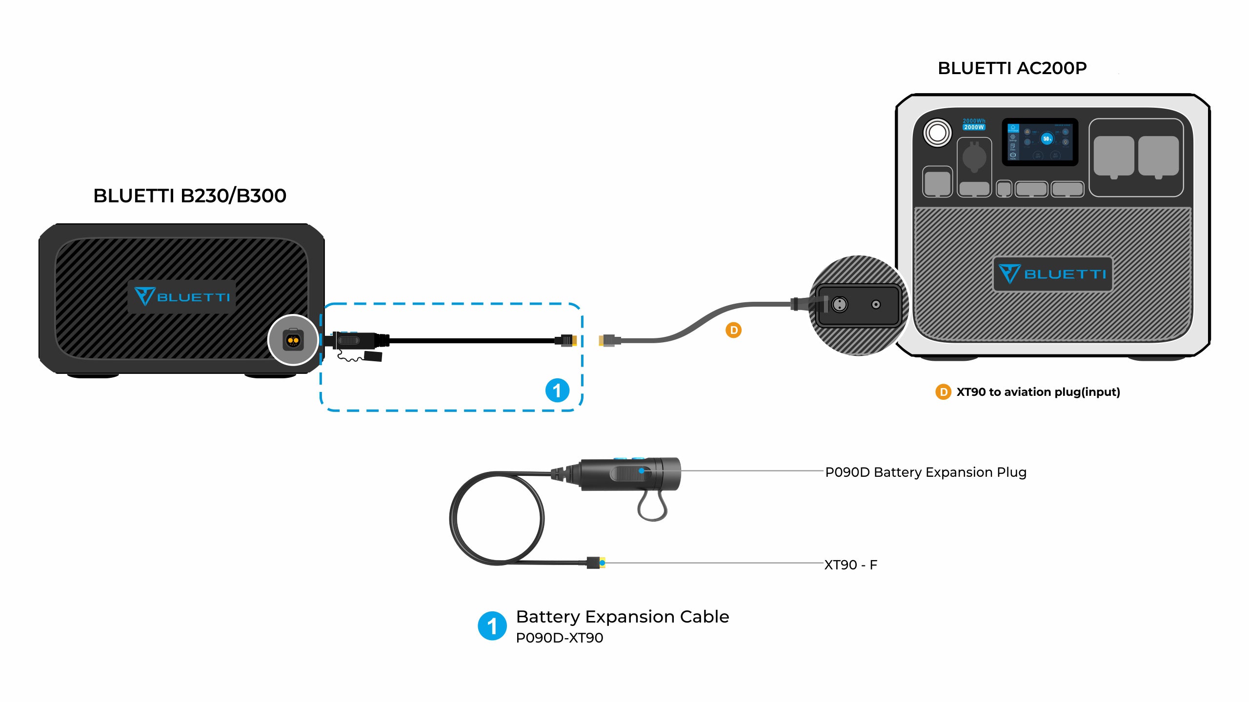 • Bluetti P090D Ekstern batteriforbindelseskabel til B230/B300