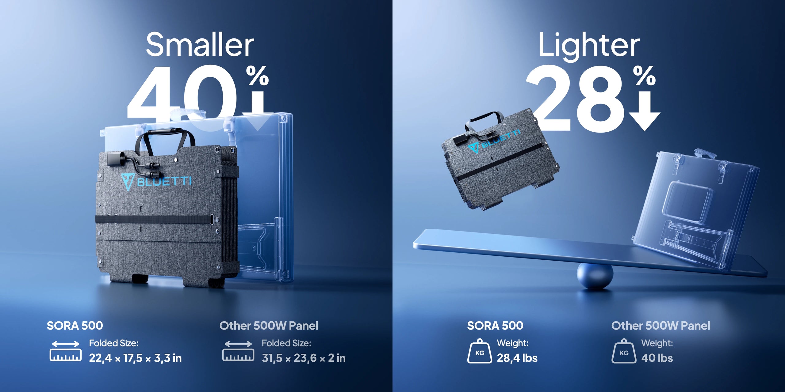 500W of solar power, now 40% smaller and 28% lighter than traditional panels. Pack it, carry it, deploy it — power doesn't have to weigh you down.