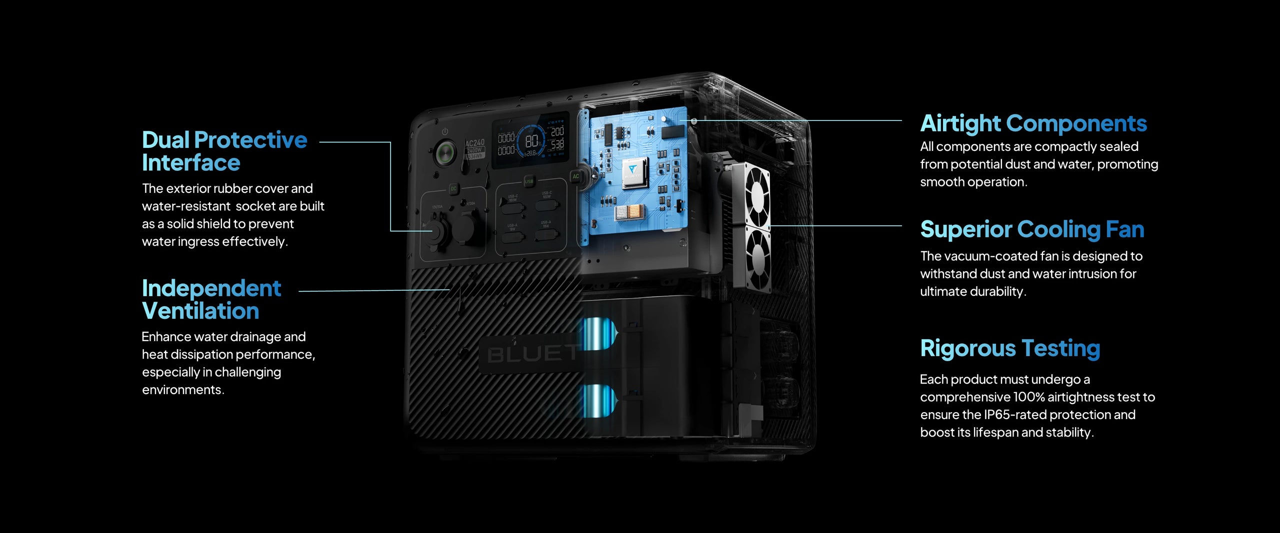 The outdoor-friendly build and IP65 water and dust-resistance ensure resilience against rain, mud, dust, and salt corrosion. Coupled with optimal ventilation to protect the internal components, the AC240 is your go-anywhere, do-anything power pal!