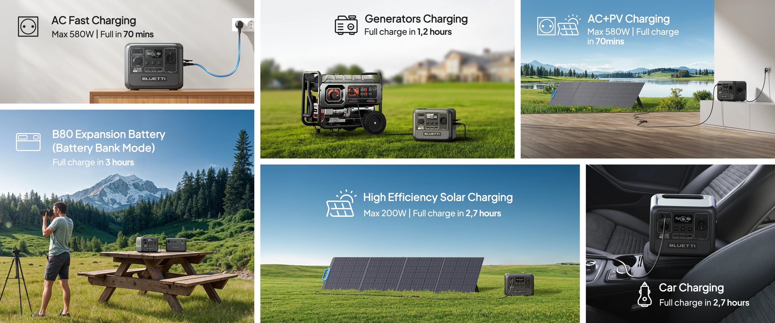 Daytime Solar: Recharge during the day with solar panels, allowing you to power your devices while simultaneously replenishing the battery.