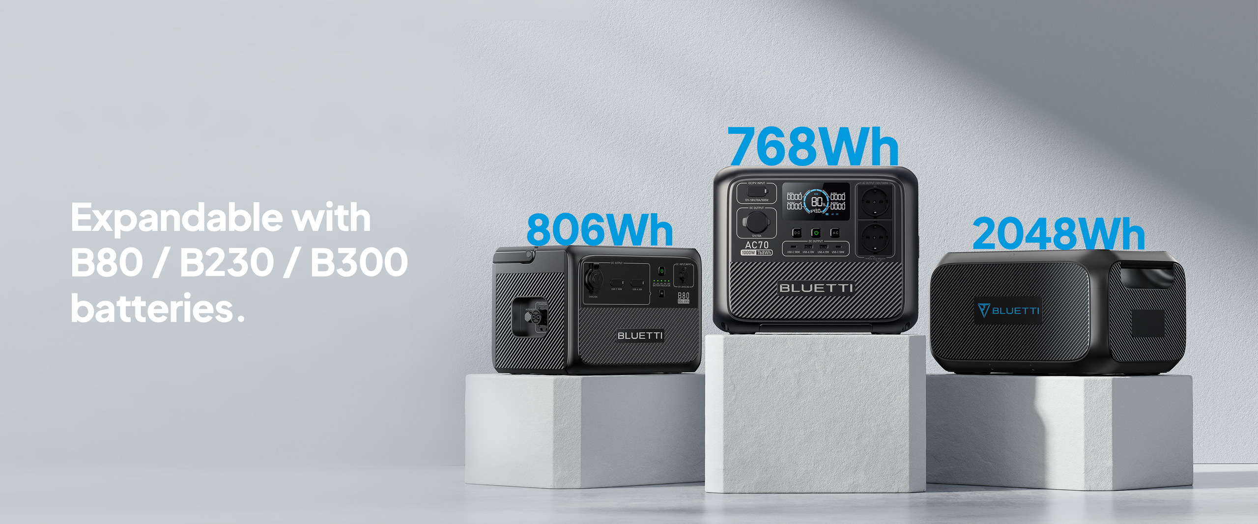 Currently, AC70 supports capacity expansion with B80 / B230 / B300 expansion batteries in Power Bank Mode.