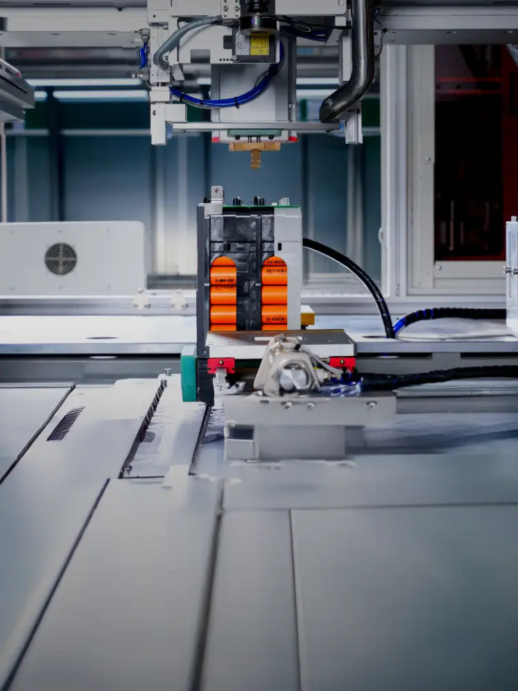 Precise spot welding is performed to securely connect the battery cells, ensuring a durable and stable battery pack structure.