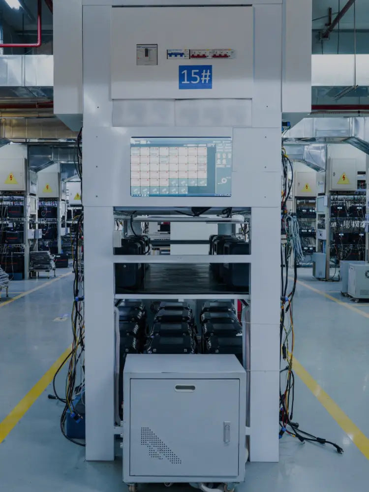 The power station undergoes an extended aging process to ensure long-term stability, durability, and consistent performance under various conditions.
