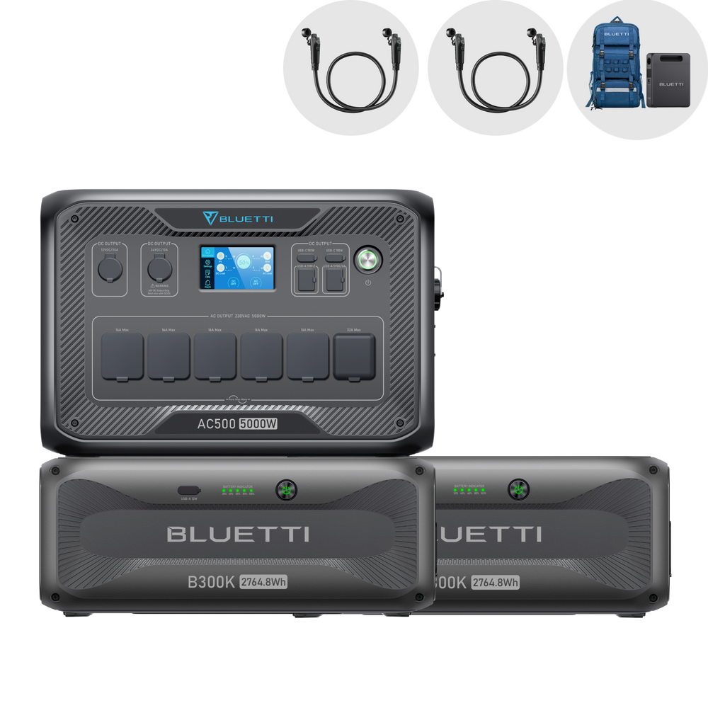 The Bluetti AC500 is a modular power station with an output of 5.000 watts. The special feature: there is a single 230-volt outlet that can handle 32 amps, making it perfect for feeding into the home network. The Bluetti AC500 is well-made and offers more outputs than you will probably ever need. The technical specifications are also impressive on all levels and offer great flexibility.
