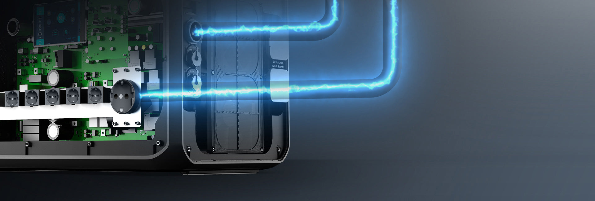 AC300 supports 3.000W Max AC Charging from wall outlet or generator, and 2.400W Max PV Charging from solar panels. With both the wall outlet and solar panels plugged in, the AC300 can support up to 5.400W* total input rate.