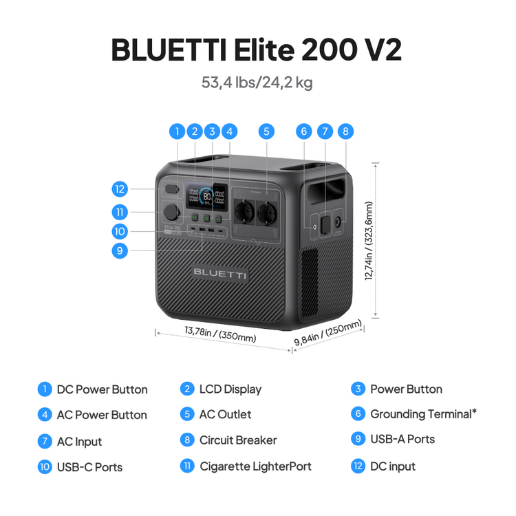 - AC Input Power: Elite 200 V2: 2.300W Max. | AC200L: 2.400W Max.