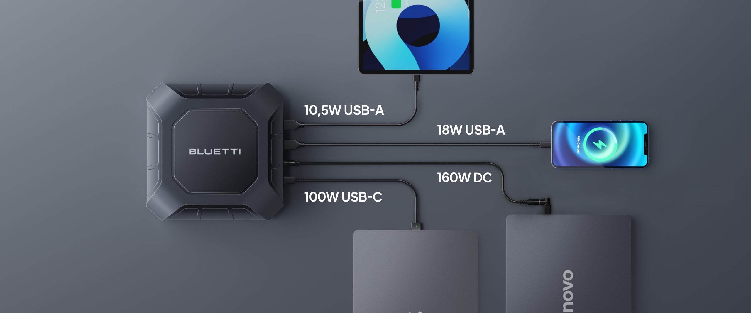 A: The X20 can also power devices via its USB-C and USB-A ports, including speakers, lamps, smartphones, tablets, drones, and more.