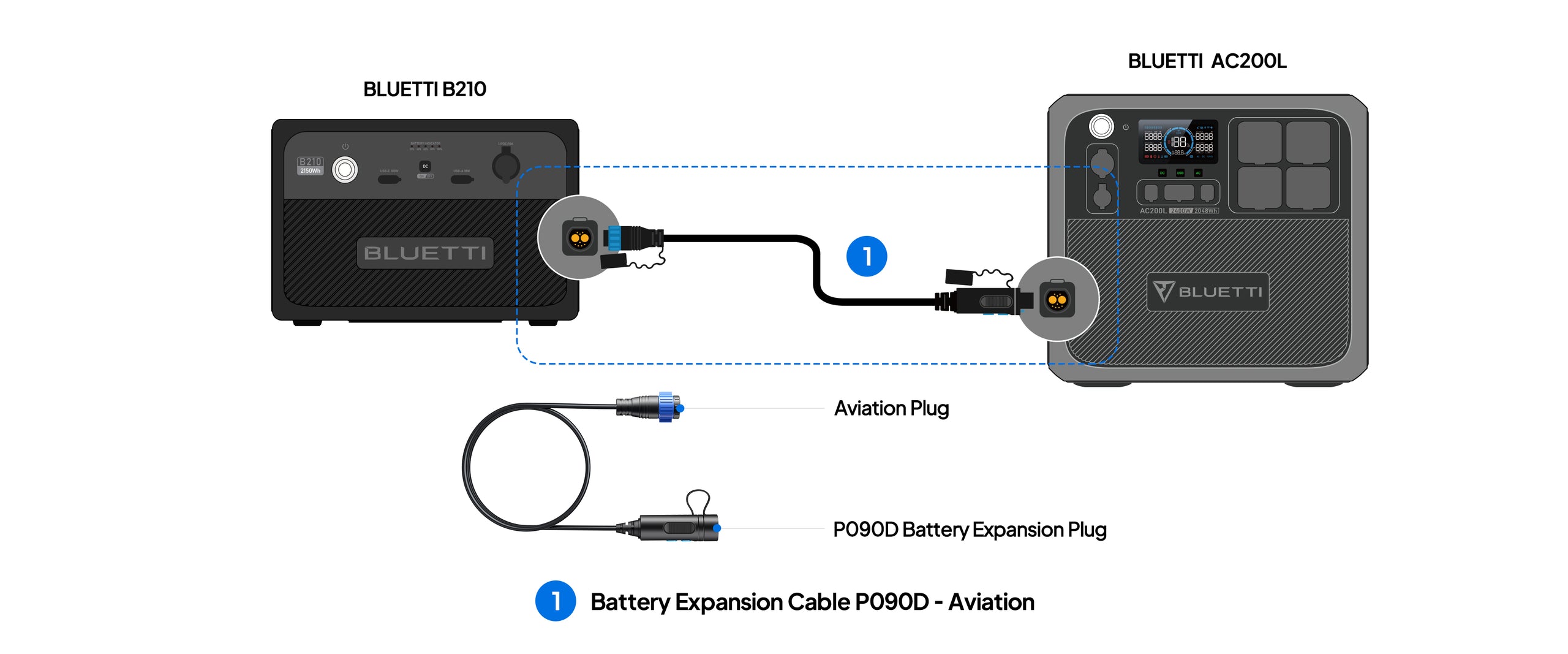 Application: By using this cable, you can connect the B210 external battery packs to your current Bluetti power stations.